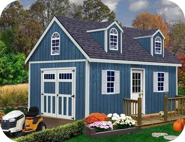 The Hampton features a great amount of storage for all your lawn and garden items. Featuring a large loft area and attractive dormers which allow light and ventilation. Included are stylish carriage style double doors, 1 (one) 32 in. x 80 in. 9 lite walk-in door, 2 (two) 18 in. x 36 in. windows with vinyl shutters, 1 (one) gable window with sunburst and 2 (two) dormers with windows. During construction you may choose to install windows and doors as shown or move to locations of your choosing. High side walls allow you to add shelving or workbench. Wood floor included. Before purchasing check with your local permit authority. Shingles purchased by homeowner. Building is shipped directly to you via curbside delivery.