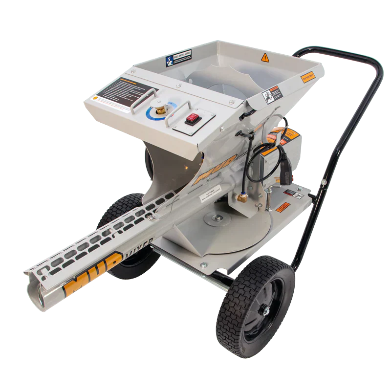 **Optional Hopper Extension – The MudMixer Hopper Extension allows users to bring the full capacity of the machine to 300 pounds of mix compared to the 120 pound capacity. Pictured MudMixer Hopper Extension is not included, but is available as an add on purchase in this listing.